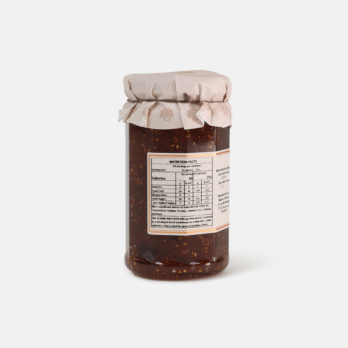 Ingredients: Cane Sugar, Figs, Concentrated Lemon Juice, Fruits Pectin. May contain traces of Nuts and Milk Made in France